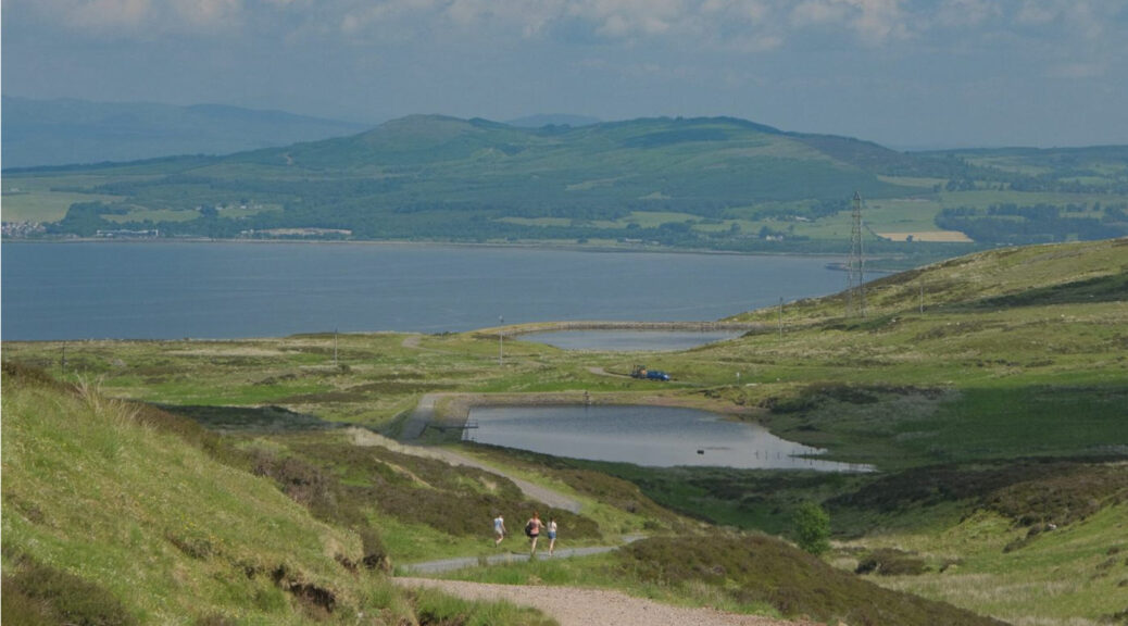 From the trail, the scenery shifts between rolling moorland, quiet reservoirs, and sweeping panoramas over Greenock, Gourock, and the Firth of Clyde. On clear days the Argyll hills and even the distant peaks of Arran can be seen.